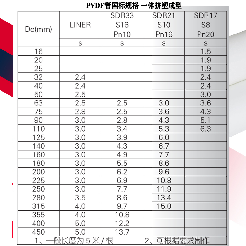 PVDF国标化工管材分子链间排列紧密,有较强的氢键,天性耐燃,结晶度65%~78%,长期使用温度-40~150℃。其突出特点是机械,耐辐照性好,可在户外长期使用,无需保养。具有江苏尊龙凯时塑业良好的化学稳定性,在室温下不被酸、碱、强氧化剂和卤素所腐蚀,广泛应用于石油化工、电子电气、钢厂酸洗、酸碱液的输送。