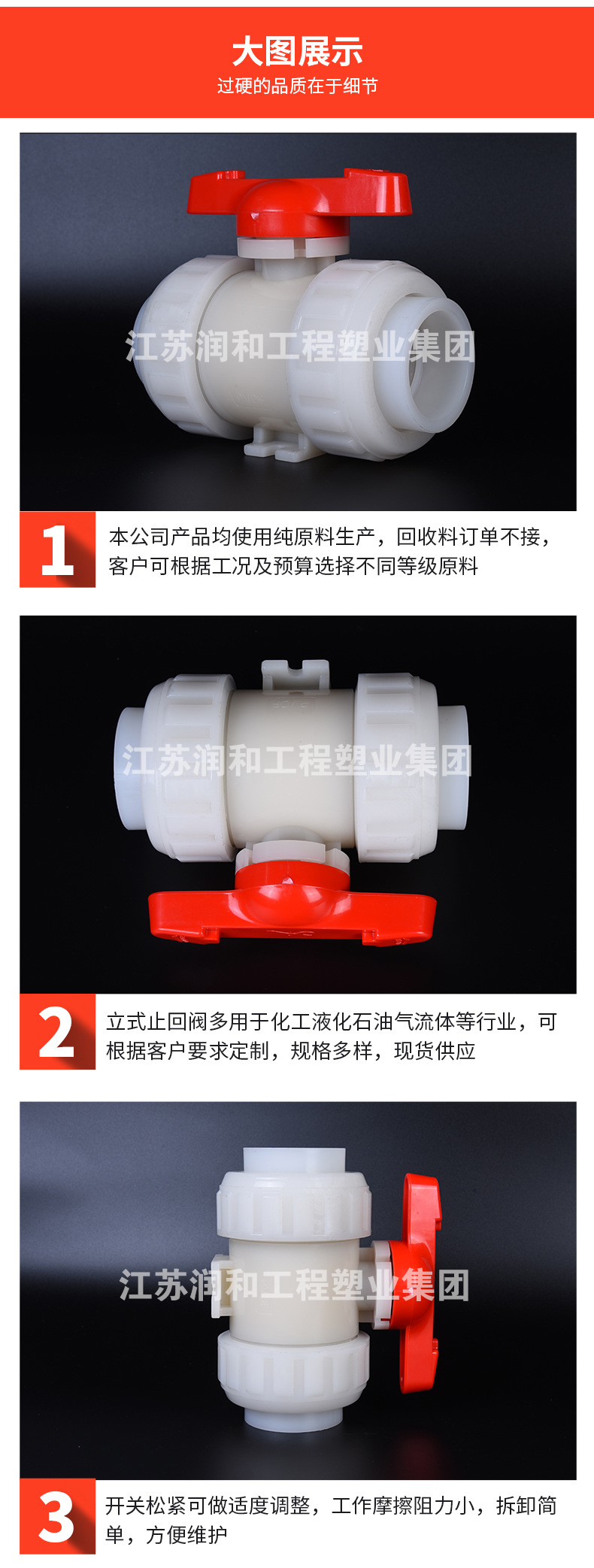 江苏尊龙凯时工程塑业有限公司主要生产工程化工FRPP管材、PPH管材、PVDF管材防腐管阀件,三通、弯头、法兰、直接、垫环、盲板、钢塑法兰、内丝外丝、管帽以及化工喷淋塔、洗涤塔、废气处理等设备。阀门类:法兰隔膜阀、法兰球阀、手柄蝶阀、涡轮蝶阀、双由令球阀、法兰截止阀、法兰底阀、升降式止回阀、旋启式止回阀、热熔止回阀、板式止回阀、呼吸阀、氟胶蝶阀、玻璃视镜、Y型过滤器、活接、液面计、四通视镜、阻火器、安全阀、背压阀等 咨询电话:17749553660