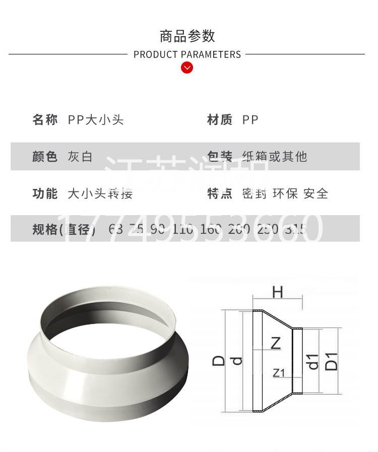 PPH变径大小头风管承插焊接DN15-DN2000
