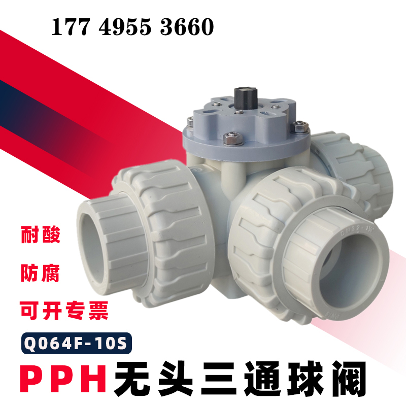 PPH无头三通球阀-双由令连接-均聚聚丙烯