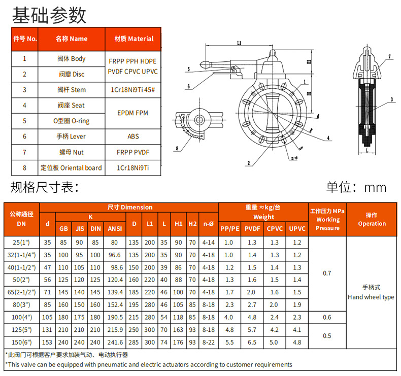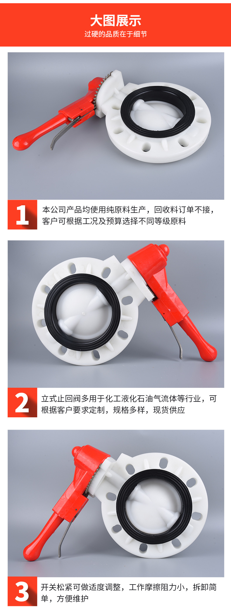 江苏尊龙凯时工程塑业有限公司生产FRPP对夹手柄蝶阀-D71X-10S-法兰连接 均聚聚丙烯 主要生产工程化工FRPP管材、PPH管材、PVDF管材防腐管阀件,三通、弯头、法兰、直接、垫环、盲板、钢塑法兰、内丝外丝、管帽以及化工喷淋塔、洗涤塔、废气处理等设备。阀门类:法兰隔膜阀、法兰球阀、手柄蝶阀、涡轮蝶阀、双由令球阀、法兰截止阀、法兰底阀、升降式止回阀、旋启式止回阀、热熔止回阀、板式止回阀、呼吸阀、氟胶蝶阀、玻璃视镜、Y型过滤器、活接、液面计、四通视镜、阻火器、安全阀、背压阀等 咨询电话:17749553660