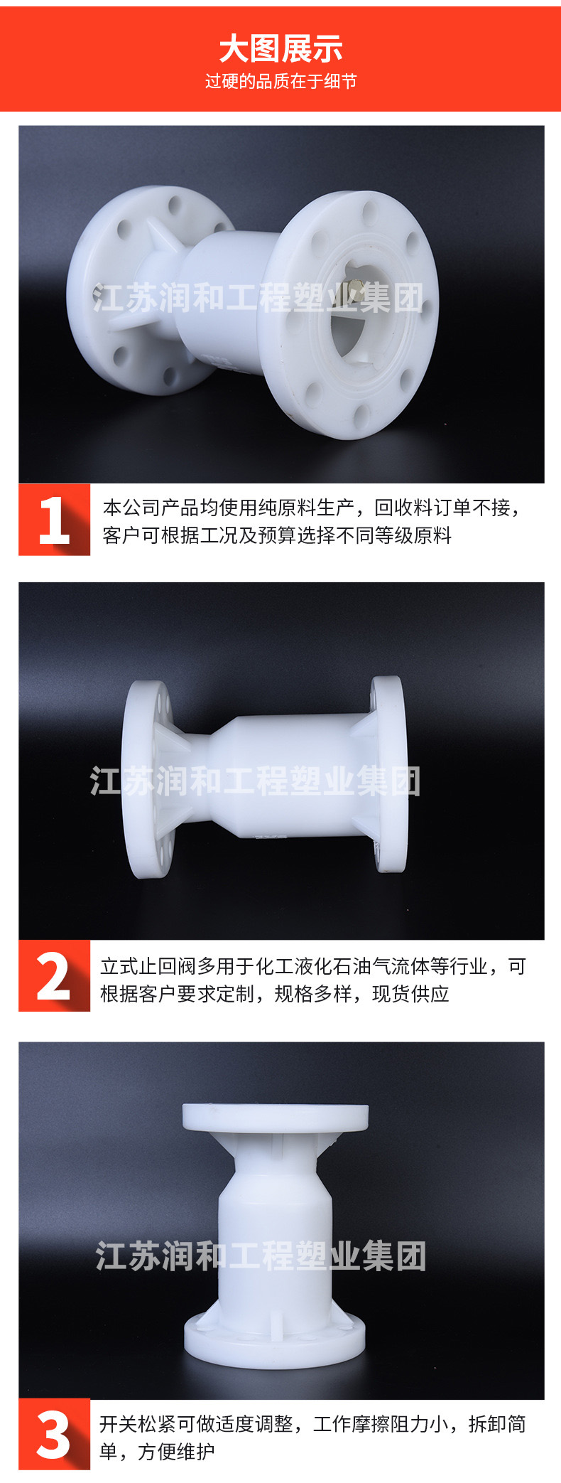 江苏尊龙凯时工程塑业有限公司生产工程化工FRPP管材、PPH管材、PVDF管材防腐管阀件,三通、弯头、法兰、直接、垫环、盲板、钢塑法兰、内丝外丝、管帽以及化工喷淋塔、洗涤塔、废气处理等设备。阀门类:法兰隔膜阀、法兰球阀、手柄蝶阀、涡轮蝶阀、双由令球阀、法兰截止阀、法兰底阀、升降式止回阀、旋启式止回阀、热熔止回阀、板式止回阀、呼吸阀、氟胶蝶阀、玻璃视镜、Y型过滤器、活接、液面计、四通视镜、阻火器、安全阀、背压阀等 咨询电话:17749553660